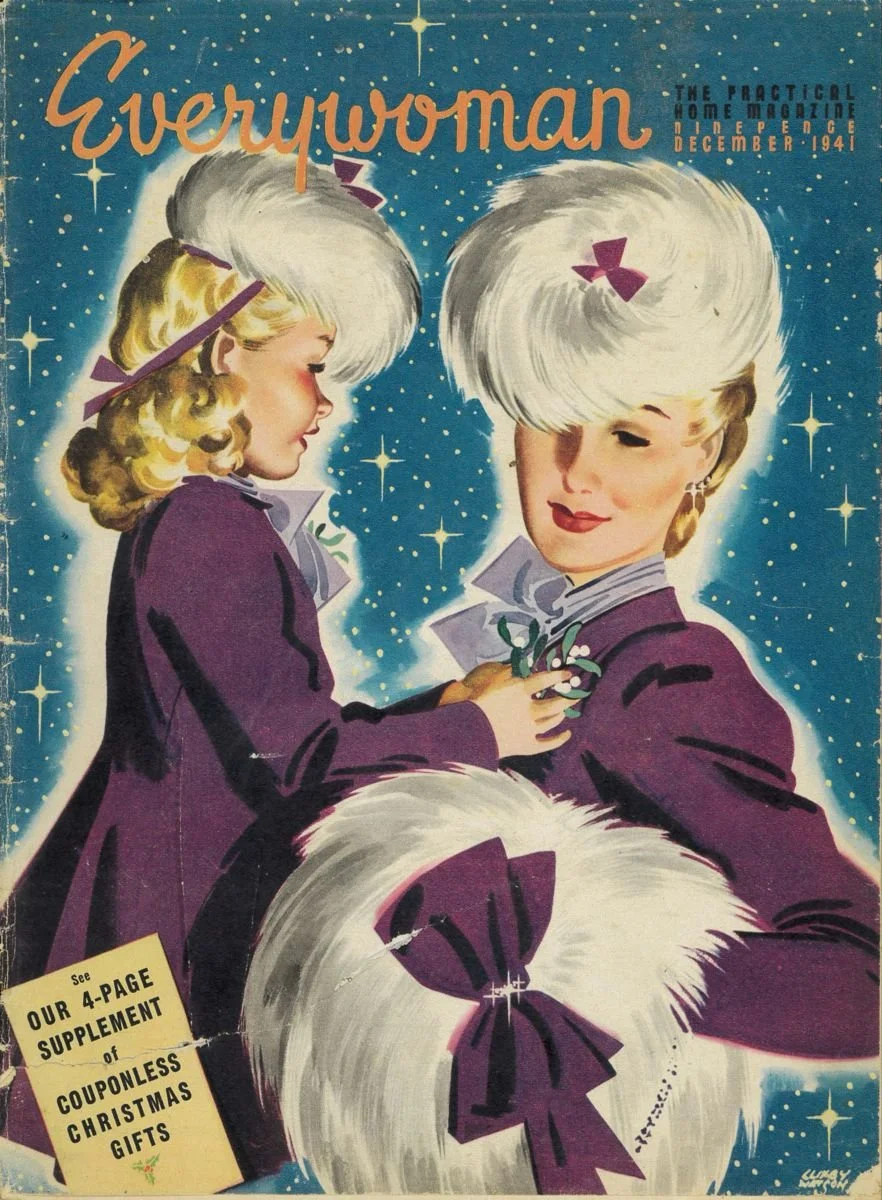My first Patreon project is the Powder Puff Hat, a fluffy little tilt hat inspired by the cover illustration of the December 1941 issue of Everywoman magazine - which is also one of the magazines available to Patrons this month. I loved how the fur in the illustration appears to spiral out from the centre, and wanted to recreate that look.