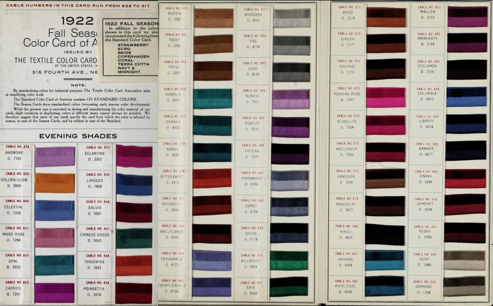 1922 Fall Season Color Card of America, issued by the Textile Color Card Association of the United States
