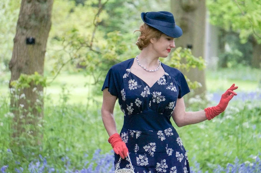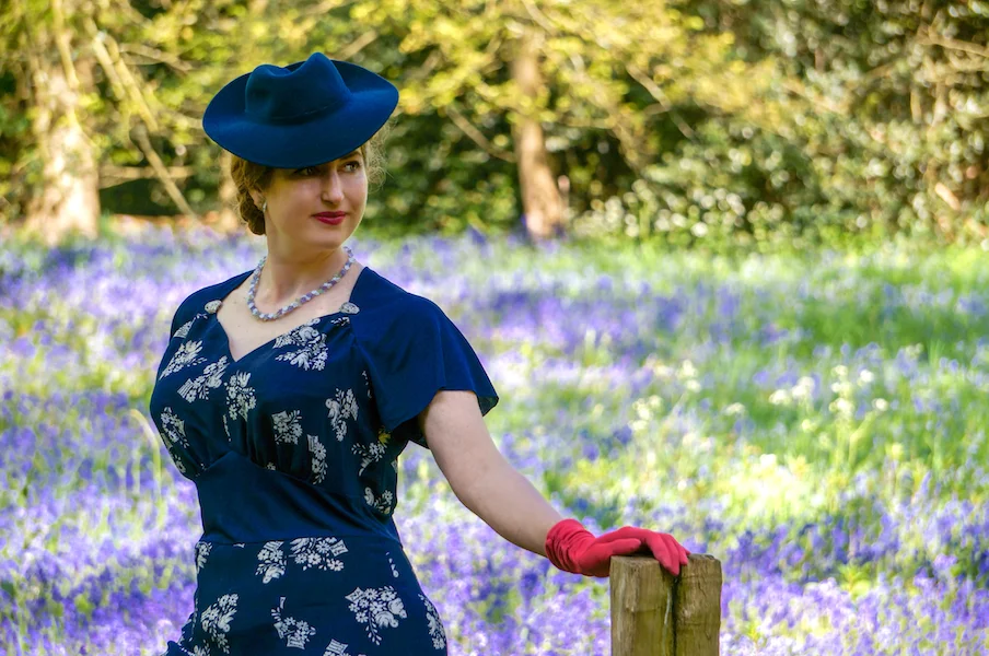 Although you may notice that the novelty print features daisies rather than bluebells, I always associate this dress with bluebell season as one of its first outings was to a bluebell wood. The English Bluebell (hyacinthoides non-scripta) is my favourite flower; they're understated where daffodils are brash, dainty where tulips are bold, and their delicately frilled trumpets, demurely downcast, give them a shy demeanour that makes even cherry blossom look extroverted. Their soft blue carpeting of woodland floors is utterly enchanting; I always feel like there are fairies hidden just out of sight whenever I'm in a bluebell wood. Unfortunately, the English bluebell is endangered by habitat loss due to the destruction of ancient woodland, as well as the introduction of the non-native Spanish bluebell as a garden plant. About half the world's population of English bluebell plants are in the UK, and they are now a protected species.
